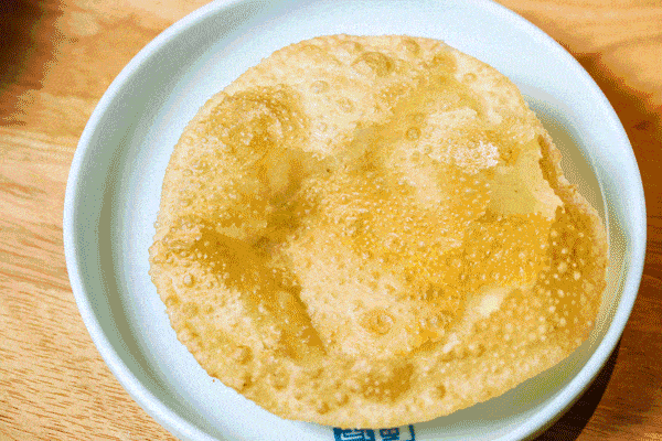 如果精米精面還嫌不夠,油炸碳水瞭解一下。燙面油香,把燙面皮搟的極薄,下鍋油炸,外殼酥酥脆脆,面餅還能嘗到燙面的嚼勁。再用燙面油香包上辣椒圈,這維生素和蔬菜纖維不就有瞭嗎?