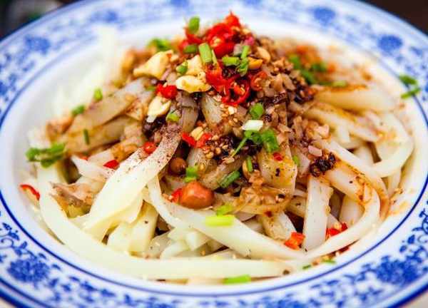 安嶽美食頭牌一定是傷心涼粉,作為安嶽特色美食,通常由涼粉、辣椒油、醋、蒜泥等配料組成。它的名字來源於它麻辣鮮香的口感,讓人味覺得到最大的沖擊,因為味道濃鬱,很多人吃瞭後淚腺受到刺激,從而流淚。有人說被辣哭,有人說是好吃得想哭,說法不一。但這名號傳下來瞭,被稱為“傷心涼粉”。