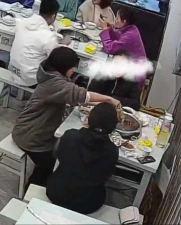 然而飯店的監控卻顯示,這三位女士趁著店員不註意的時候,把那些剩餘的食物全部倒進瞭火鍋裡,因為火鍋的水挺深的,從外表基本上看不出火鍋裡藏著那麼多東西。