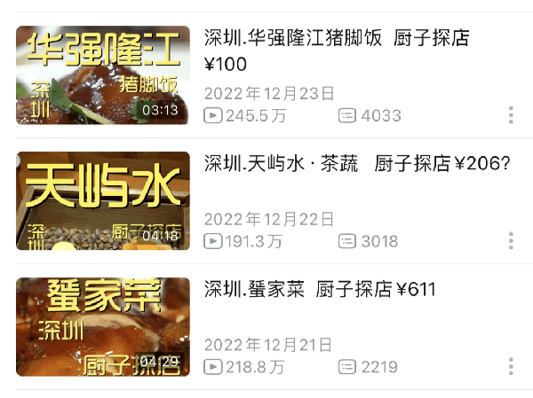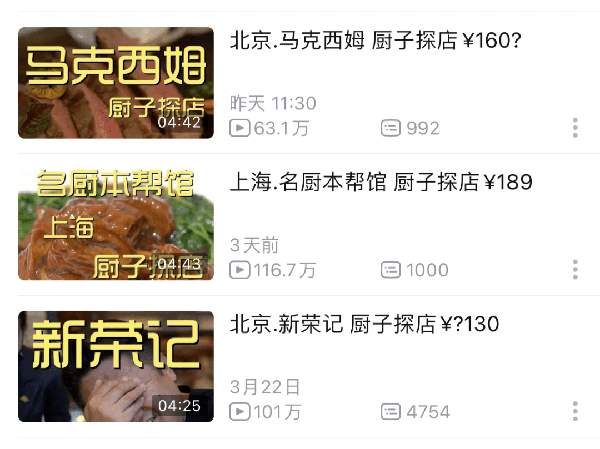 地點+餐廳名稱+廚子探店+價格,幾項簡單要素構成瞭唐仁傑賬號的標題模板,沒有嘩眾取寵,沒有故弄玄虛,沒有懸念,這種取名風格在標題黨遍地走的今天顯得格外另類。