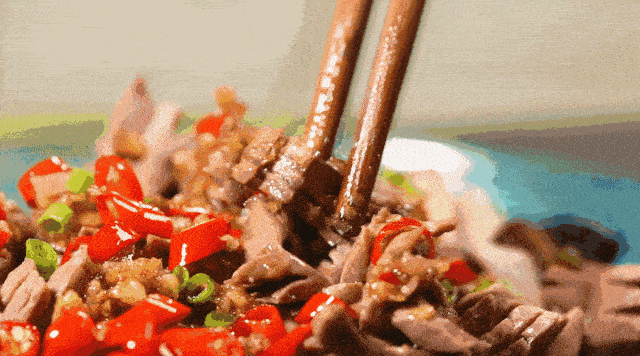 材料:腰子2個、紅辣椒5個、蔥花、蒜末、普丁、料酒、鹽、油、醬油、香油