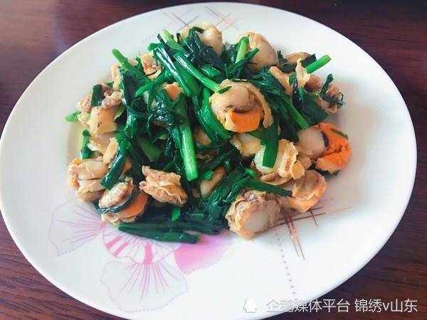 ②料理鍋中放少些油、燒熱、倒入韭菜苔翻炒;炒至變色後加的少許鹽,倒入扇貝肉、炒均勻就可以瞭。扇貝是加工後的成品,微辣,稍微炒一下就可以瞭!