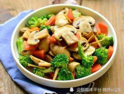 3、鍋中倒油放入口蘑炒軟後,放入西蘭花和胡蘿卜翻炒;