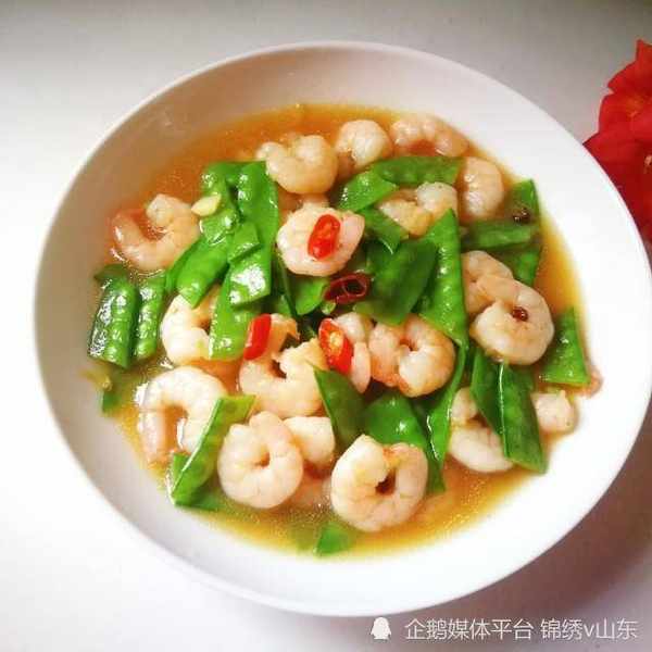 準備食材:荷蘭豆,蝦仁,薑絲,蔥花,蒜末。