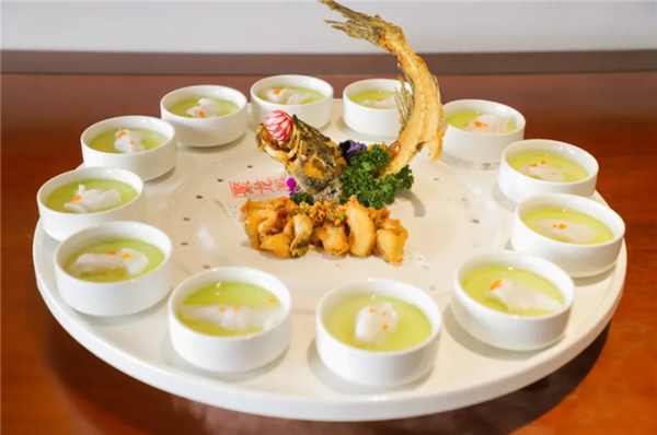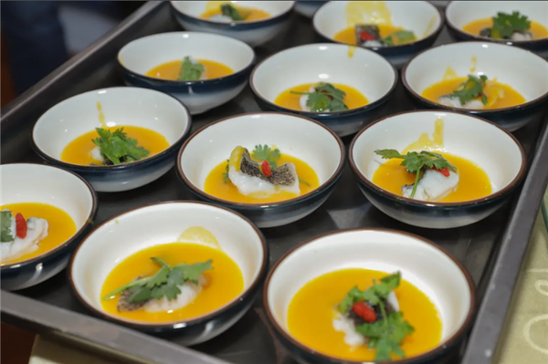 菜品品種十分豐富,風格也非常多樣化。乾坤筍殼魚、金湯筍殼魚、蕉葉焗魚嘴、蟛蜞焗蛋黃、魚蝦蟹餅、杏香黃金雲斑、杏香麻湧香蕉拼牛肉等各式麻湧特色菜,將水鄉風味和風情淋漓盡致地展現於餐桌上,不少菜品在造型創意、口味搭配上花樣百出,給评审們帶來不少驚喜。