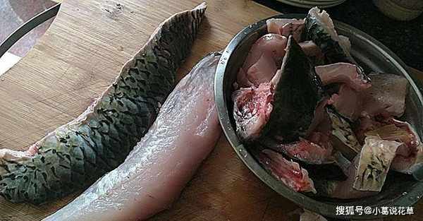 首先,我們準備一條比較大的草魚,洗凈,切塊,放入大碗中,加入蔥薑蒜,料酒,加入黑醬油,加入其他配料。和魚一樣。醃制10分鐘入味。