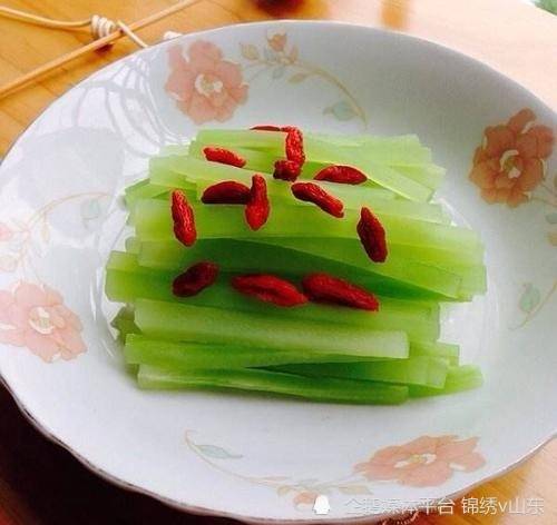 6.撈出汆燙之後的萵筍、枸杞,即可