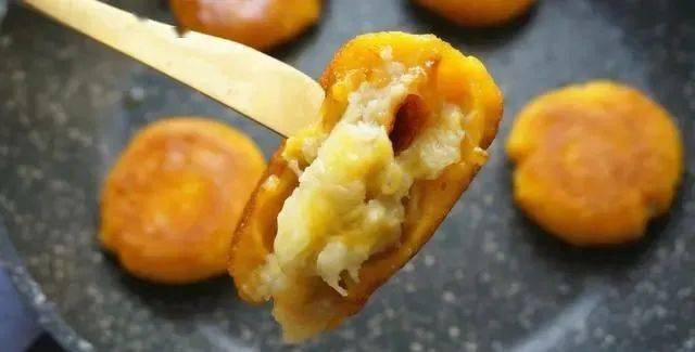 煎好的糯米餅,趁熱吃做美味,不過要註意別燙嘴瞭,濃鬱的香蕉味,淡淡的南瓜清香,還有糯米的軟糯微甜,太好吃瞭。