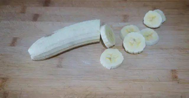 第三步:然後準備香蕉,把香蕉切成片,或者壓成香蕉泥。揪下來一團,把香蕉包進去。