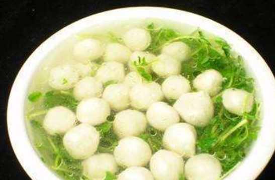 威海美食中湯類分海參湯、三鮮湯、魚腐湯、雞絲湯等多種,其中以魚腐湯最負盛名,俗稱威海清湯。威海清湯,又稱魚腐湯,製作方法是將牙片魚肉剁成肉泥,加調味品製成小丸,清水煮熟放在備有香菜的碗內,再把已制好的清湯調好口味沖入碗中,白丸浮上。有鮮嫩的特點。