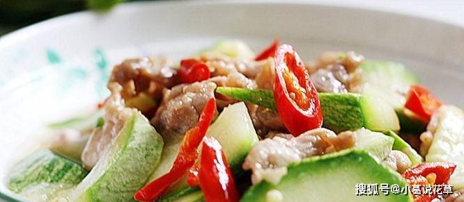 4、冷油鍋燒熱,加入蒜茸和薑絲爆香,再加入醃制好的肉片炒香,再加入西葫蘆和紅辣椒一起炒香,稍炒片刻,酌情加入。鹽適量,味精少許,翻炒均勻,出鍋,開吃啦!