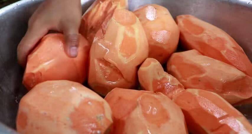 要制作這種小吃,您需要選擇新土豆。紅薯的品種很多,有白紅薯、黃心紅薯、紅紅薯等。當然,紅心土豆是最香甜可口的,所以買土豆做菜的時候一定要選對。土豆煮好後,將紅薯去皮並清洗幹凈。