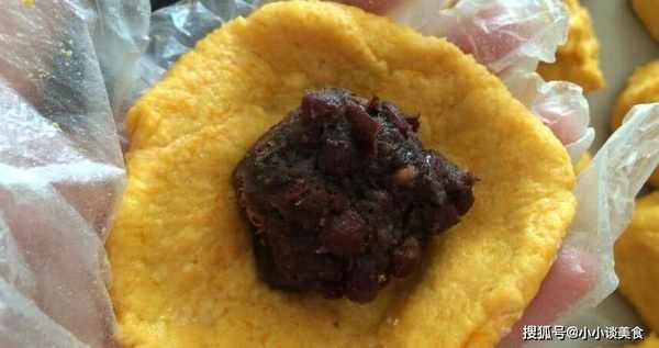 南瓜面團揉好後,可以做一些南瓜派的餡,比如豆沙餡、紫薯餡等,將紅豆放入鍋中做豆沙餡,或者蒸紫薯做紫薯餡.比較簡單。南瓜餅餡做好後,就該把餡料包在南瓜面團裡,然後搟成南瓜餅瞭。