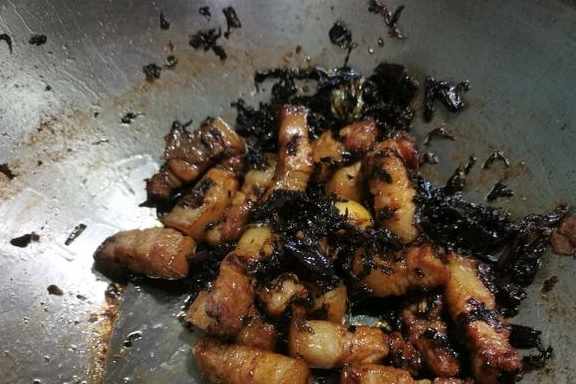【所需食材】:五花肉500克、梅乾菜適量、八角2個、香葉3片、冰糖5克、葱薑蒜少許、醬油和生抽適量、適量料酒去腥