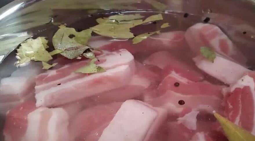 五花肉切好後,放入鍋中用水焯一下,鍋中加水,放入切好的五花肉,再加入鹽、香葉、八角、花椒、薑片一起煮熟,什麼能讓肉更香魚腥味就出來瞭,但是煮的時候一定要煮到筷子能紮透為止。