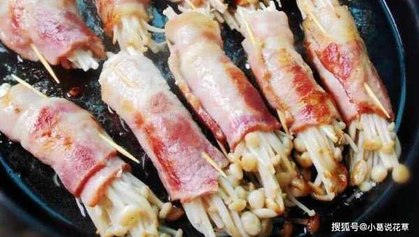 很多人早餐都吃培根。先切成薄片,下鍋油炸,配面包食用。味道也很好吃。也可當菜食用。培根金針菇也是一道很不錯的菜。這道菜的吃法也很簡單,先將金針菇洗凈,再將培根切成片。