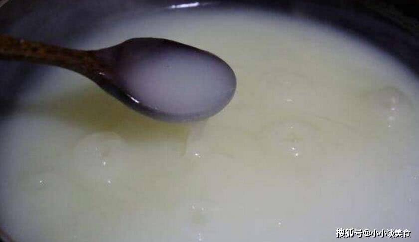 做過芡實勾芡的朋友一定知道,芡粉水倒入鍋中後很快就會勾芡,所以在倒入面糊的時候一定要邊倒邊攪拌,否則面糊倒入後會略微糊狀它。鍋裡,很容易熬成一團,所以一定要不停的攪拌。面糊倒入鍋中後,當面糊開始冒泡時,基本就熟瞭。然後用勺子舀起來看一下。出來的時候關火。