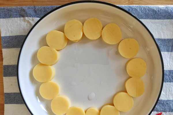 2、把豆腐擺在盤子的一周,擺放要均勻,這樣才能看起來更加美觀。