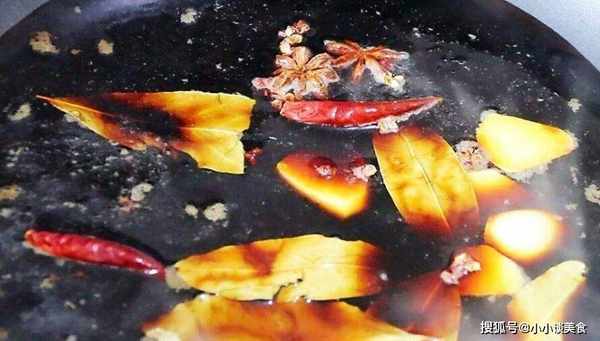 下一步是煮醬汁。一聽肉醬這個名字,就知道是用醬油做的。首先準備好八角、月桂葉、食鹽、幹辣椒和桂皮,然後將這些材料放入鍋中翻炒,烤後醃制的醬汁裡的肉更香,有臘肉的味道。煮好後加入醬油、糖和白酒拌勻。