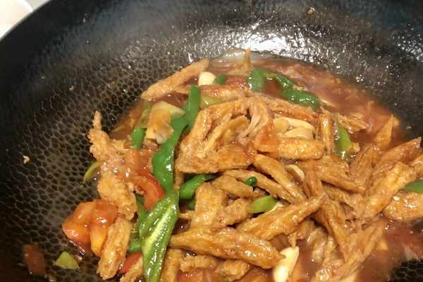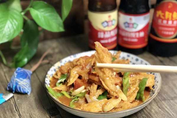 2、大傢在做紅燒腐竹的時候,腐竹不要直接下鍋炒,一定要記得多加一步,把腐竹掛糊,油炸一遍,這樣子做出來的腐竹特別好吃,而且經久耐煮不容易碎掉。