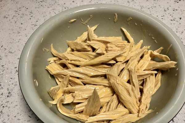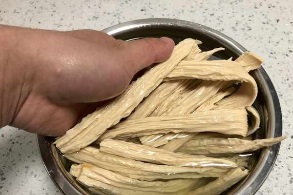 1、泡發腐竹的時候,最好用涼水提前泡發,因為用涼水泡發的腐竹不會出現夾生的情況,而且這樣泡出來的腐竹口感更加勁道。