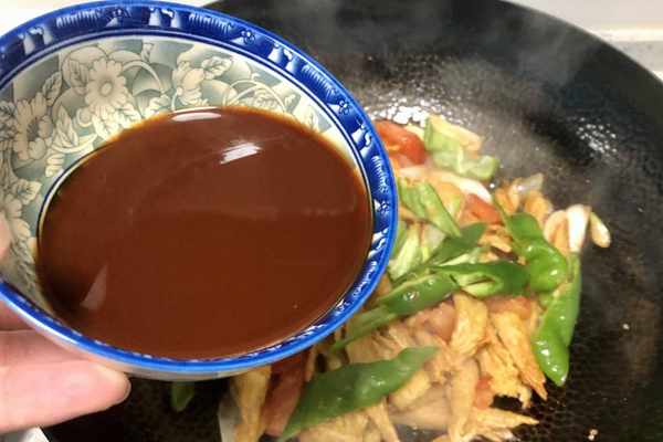 5、再來調一個料汁,紅燒醬油1勺、生抽2勺、蠔油1勺、玉米淀粉1勺、鹽少許,加適量清水攪拌均勻。