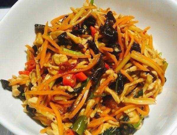 魚香肉末:將豬肉、香菇、生菜切塊,肉末加入鹽1克、料酒2克、水淀粉10克拌勻。調味汁,熱鍋,加入混合油,豬肉剁碎,翻炒至豬肉變白,加入黃瓜辣椒炒香,加入薑蒜炒香,剁碎。生菜和蘑菇,炒至生菜絲變軟,加入魚露快速拌勻,撒上蔥花拌勻,出鍋裝盤。