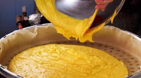 蒸出來的小吃叫玉米餅。這也是一種傳統小吃。很多人都愛吃,玉米也是粗糧,不要隻吃面食。吃粗糧也很好。你可以把混合好的面糊舀到一個小碗裡,然後在蒸鍋裡蒸。