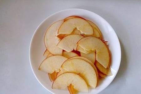 7.將其放在烤盤中,放入烤箱裡,用180度烤制15分鐘左右,將蘋果片烤幹即可。