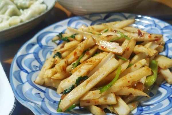 我特別喜歡的一道菜,做法也超級簡單,味道非常過癮,也是很下飯的。蓮藕去皮切成粗條,鍋裡放油燒熱,先放入少許薑絲爆香,再放入一勺剁椒醬和藕條,翻炒至蓮藕斷生即可。