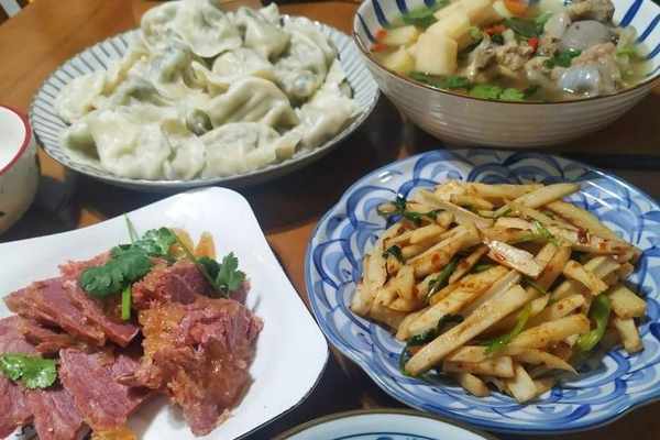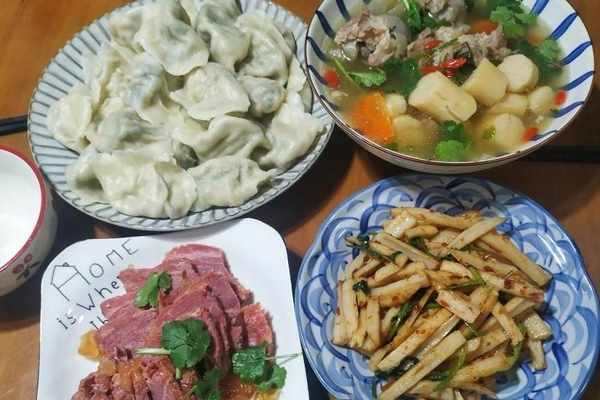 元宵節通常要吃元宵,但也沒那麼絕對,我們今天沒做元宵,也沒買,但是吃瞭餃子。北方人無論是什麼節,都必須有餃子。看完電影回來拌瞭豬肉白菜餡,先把山藥排骨湯,再包好餃子,老公快要下班的時候煮餃子,再快速切牛肉炒個菜,簡單的兩菜一湯就好瞭,餃子也熱騰騰的出爐瞭。