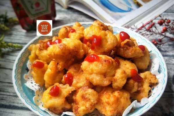 食材:菜花1朵、雞蛋1個、面粉少量、鹽半勺、胡椒粉1勺。