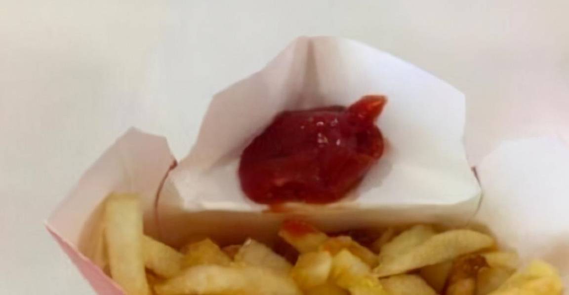 首先,我們得找到薯條盒上多出的一個空間,很多人都找不到在哪,因為薯條已經很滿瞭,哪有多餘的空地,其實那個空位就是薯條盒上有半圓凸出來的地方,我們可以將它折過來,這樣番茄醬就能直接往上擠瞭,這樣吃薯條蘸番茄醬也就方便省事多瞭,而且也會比較衛生,總比直接擠在餐盤上好。這個薯條盒的小機關你找到瞭嗎?