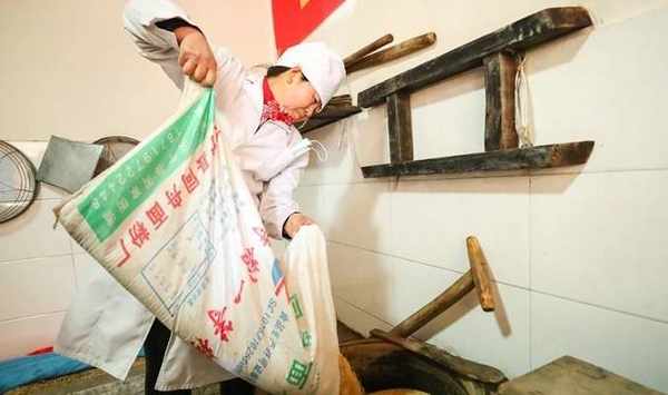 燒火間隙,王讓民用力搗碎長滿小芽的麥子。“這些小麥要浸泡8天左右,等到生出與自身等長的芽來,制作拉板糖的第一步就算完成瞭。”