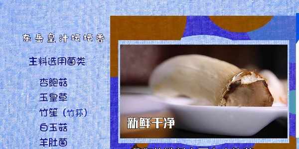 大廚王俊凱介紹,東嶽皇汁壇壇香這道菜,據說傳自清朝末年,是泰山附近的一些農戶逢年過節待客時準備的一道菜品,最早使用蘑菇、豬肉、野菜等食材制作而成。經過多年的改良升級,使得這道菜品更加營養均衡,口感十足。制作這道菜需要以下食材——