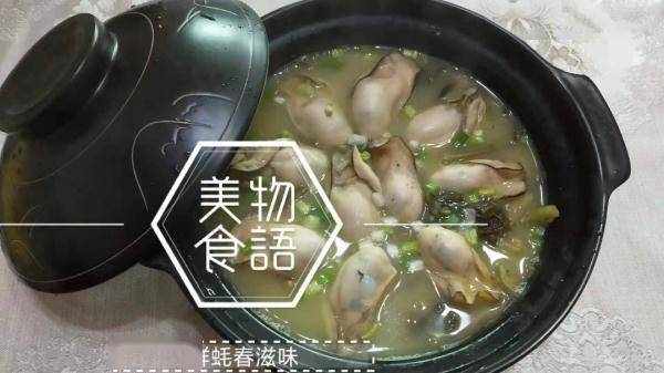 (2)咸酸菜、胡椒碎、薑片加入由豬骨熬制的高湯裡煮20分鐘,加入生蠔後待再次煮沸,加鹽調味、灑上蔥花,即可。