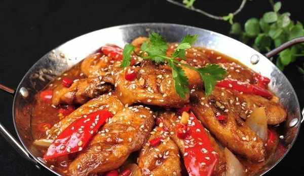 鍋中燒油,油熱後倒入花椒炒出香味,放入幹辣椒、蒜片翻炒出香味,再加入炒好的雞翅翻炒2分鐘,倒入炒好 的土豆片,加入糖翻炒均勻後,加入酸辣蘿卜丁,再加入白芝麻翻炒均勻後。關火,出鍋裝盤即可食用。