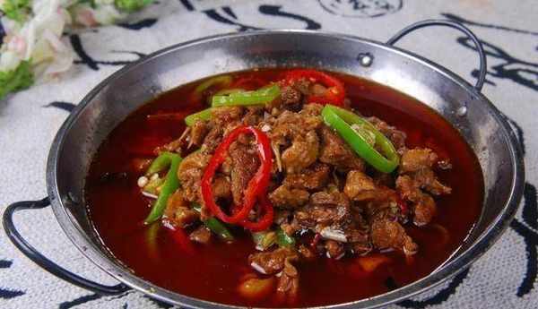 牛蛙中加入料酒、白胡椒粉、淀粉、鹽抓拌均勻,醃制20分鐘備用。鍋中燒油,油熱後倒入蒜和泡薑翻炒出香味。再加入幹辣椒和花椒翻炒出香味。倒入郫縣豆瓣醬翻炒出紅油。