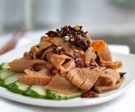 備料:紅油2勺、香油一勺、花椒3勺、幹辣椒15個、鹽一勺、涼拌醬油1勺、植物油適量、牛百葉400克。