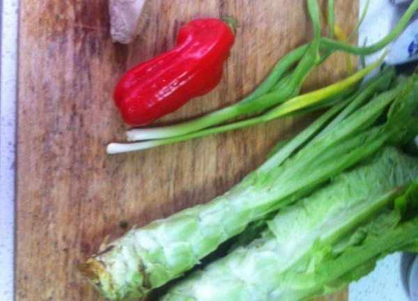 制作過程:第一步,首先將需要的萵筍、薑、青蒜以及紅辣椒準備出來,該清洗的清洗一下