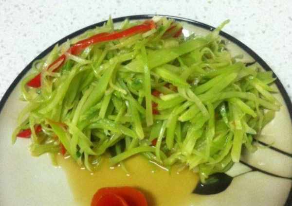 2、要選用比較新鮮的萵筍,這樣做出來的菜肴會更加的清脆,我們平時在傢做涼拌菜的時候,黃瓜、卷心菜也同樣需要選用比較新鮮的