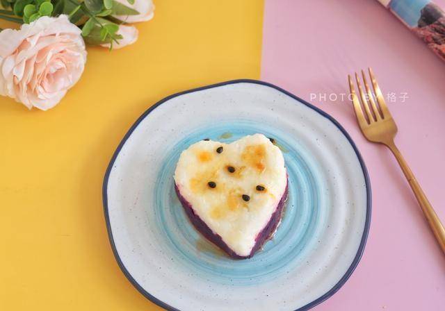 【材料】紫薯:1個、山藥:半根、牛奶:適量、細砂糖:適量、百香果醬:1勺