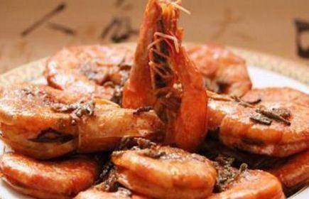 7.當蝦時尚後旺火收汁,使湯汁濃稠且均勻地包裹在蝦的外面,關火。此時倒入事先炒好的茶葉,翻拌均勻出鍋。