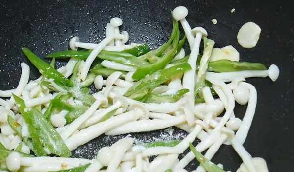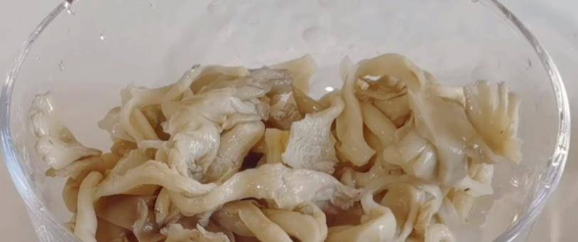 1、 海鮮菇清洗幹凈,裝入大碗中加水末過,再加入一小勺鹽醃制10分鐘,這樣做出來的海鮮菇更加入味,口感也會更加爽滑。