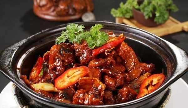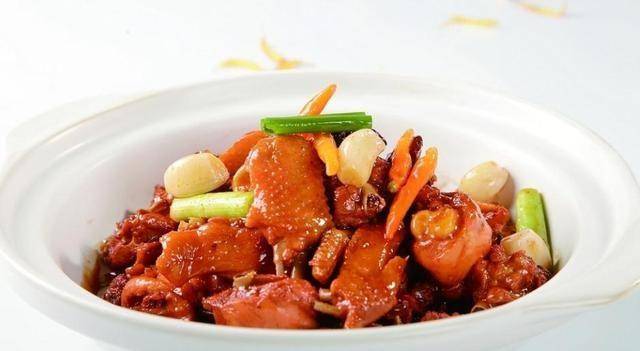 加入老抽、生抽和冰糖翻炒3分鐘,再加入清水大火煮開,轉中火燜煮30分鐘,開蓋,栓大火收幹湯汁,放入蔥段,翻炒均勻。倒入砂鍋中,中小火燉10分鐘。即可食用。