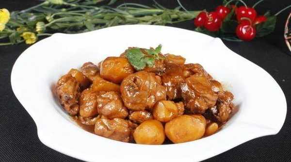 備料:板栗200克、土雞900克、料酒1勺、蠔油1勺、醬油1.5勺、清水半碗、薑5片、胡椒粉半勺。