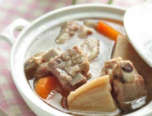 材料:鮮藕 300克、豬肋排 300克、生薑 3克、精鹽 少許,小蔥 少許