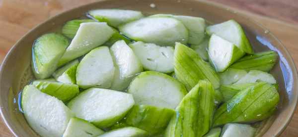 4、絲瓜醃好後加清水沖洗掉表面的鹽分,然後再擠幹水分備用。