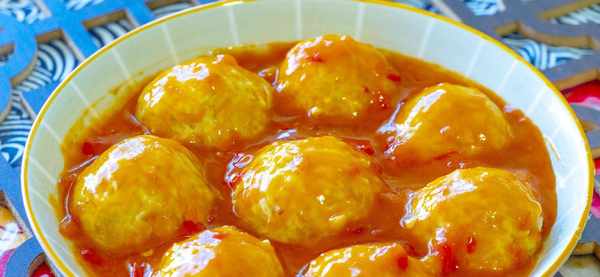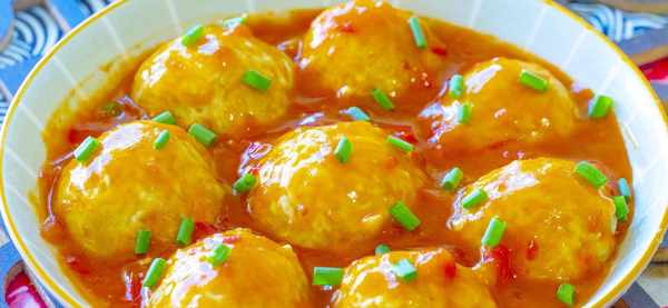 9、這時候冬瓜丸子也蒸好瞭,取出來後直接淋上熬好的西紅柿醬。最後撒點小蔥花點綴下,清淡爽口的冬瓜豆腐丸子就做好瞭。