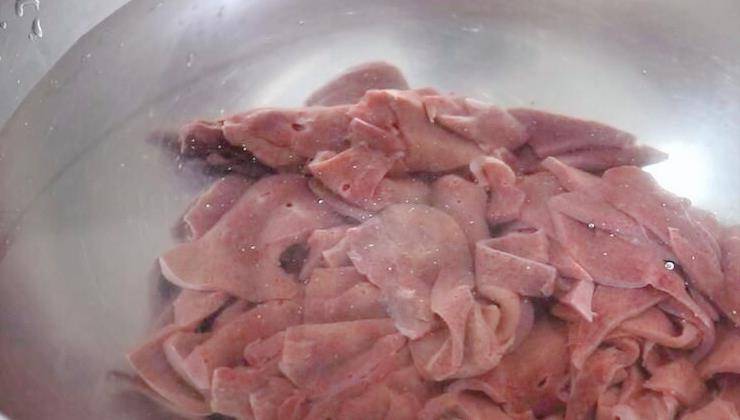 1、首先把豬心切成四份放入碗中,加水清洗幹凈,然後取出來放在菜板上切成薄片,切好之後放入涼水中給它浸泡半個小時左右,祛除腥味;
